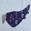 Die Spucklätzli bestehen aus weichem Jersey. Eine Seite mit Totenkopf-Motiv, die andere Seite uni, 1x hellgrau, 1x violett. Sie können beidseitig getragen werden und sind grössenverstellbar durch zwei Druckknöpfe pro Seite.