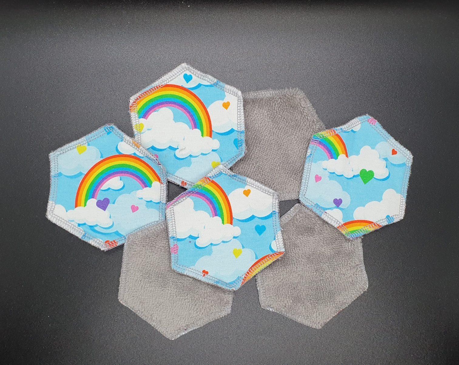 Die eine Seite dieser wiederverwendbaren Abschminkpads besteht aus kuschelweichem Bambusfrottee, die andere Seite besteht aus Jersey. Waschbar bei 40°C