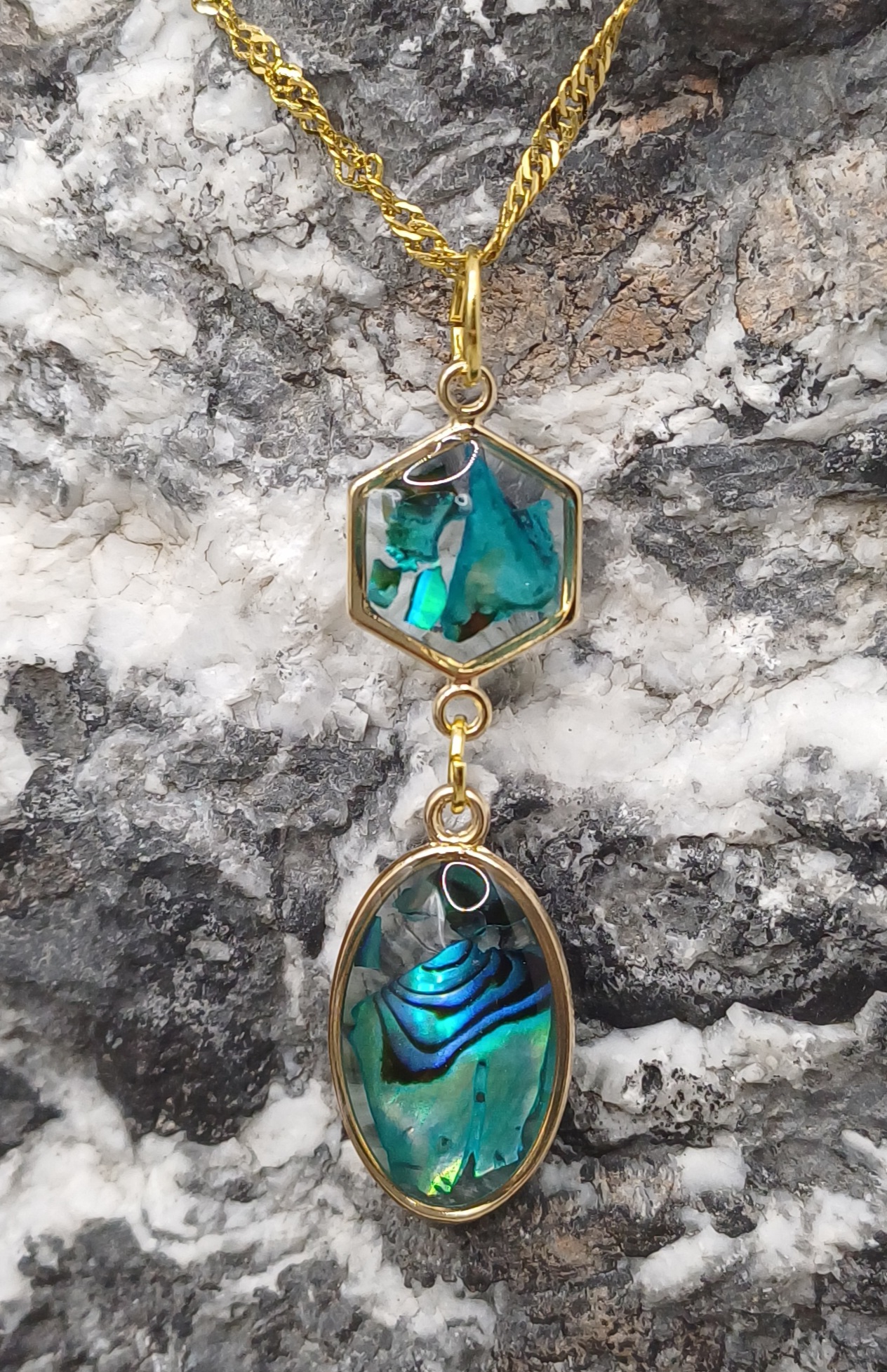 Anhänger aus Epoxidharz mit Splittermuscheln 2Fach