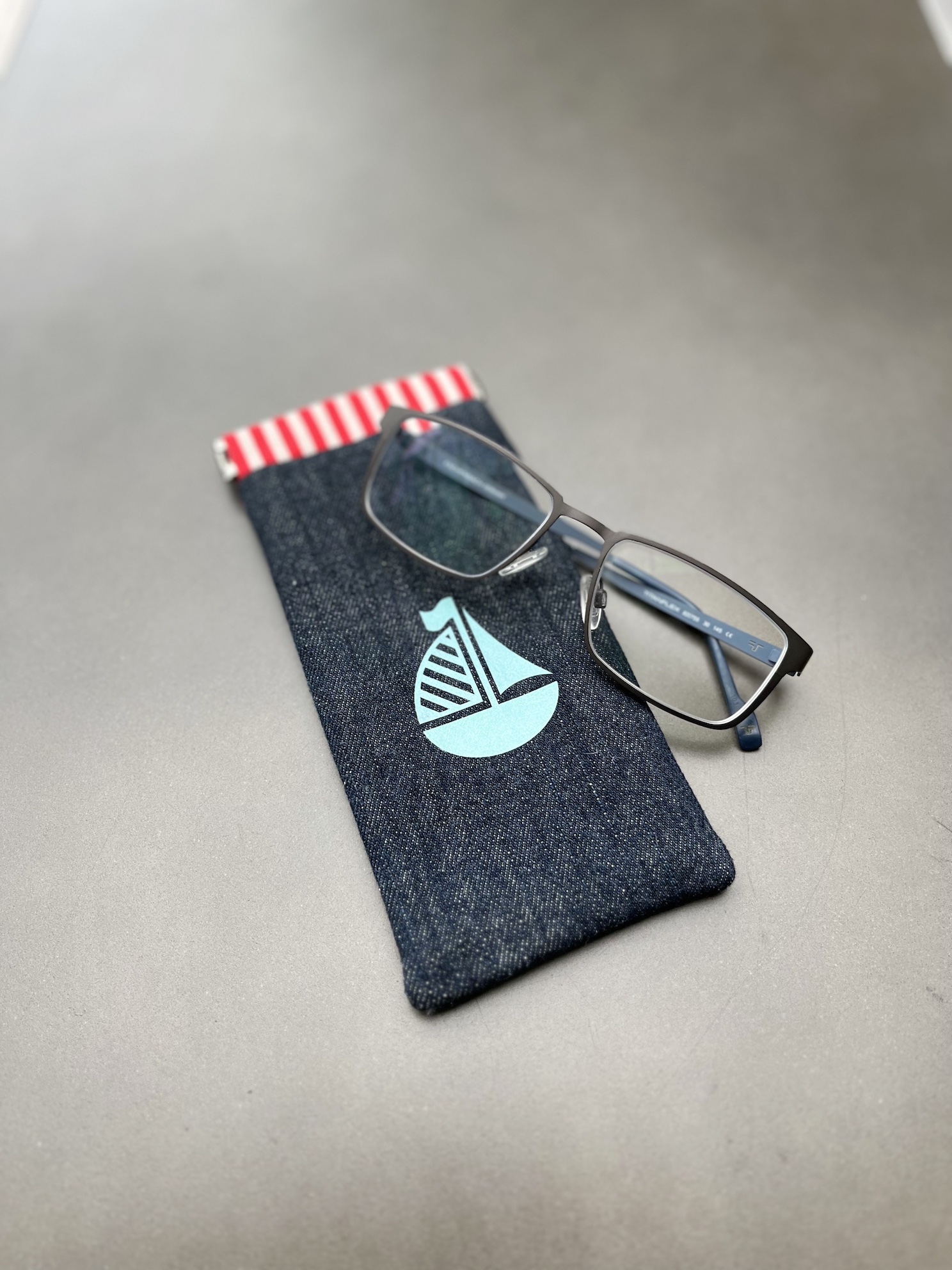 Brillenetui mit Schnappverschluss aus Stoff genäht.