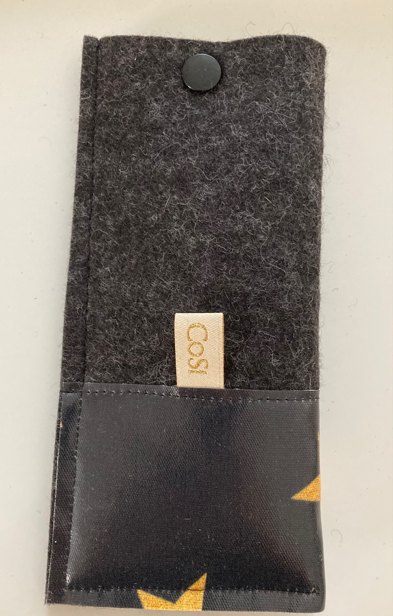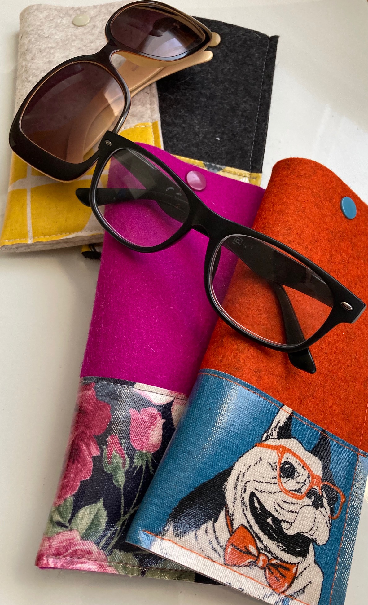 Brillenetui aus Wollfilz und Wachstuch