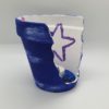 Ein dekorativer Bruchtopf in dunkelblau mit Sternen an der Innenseite, Höhe ca. 11cm, inkl. Teelicht und Dekosand.