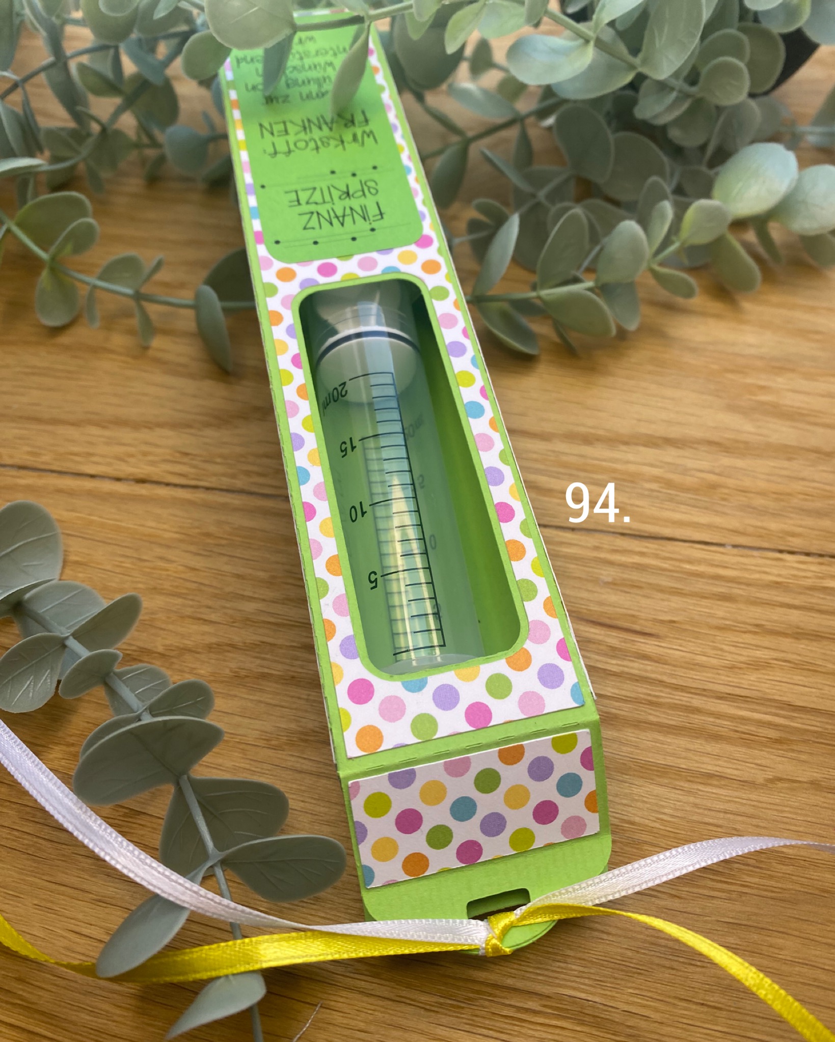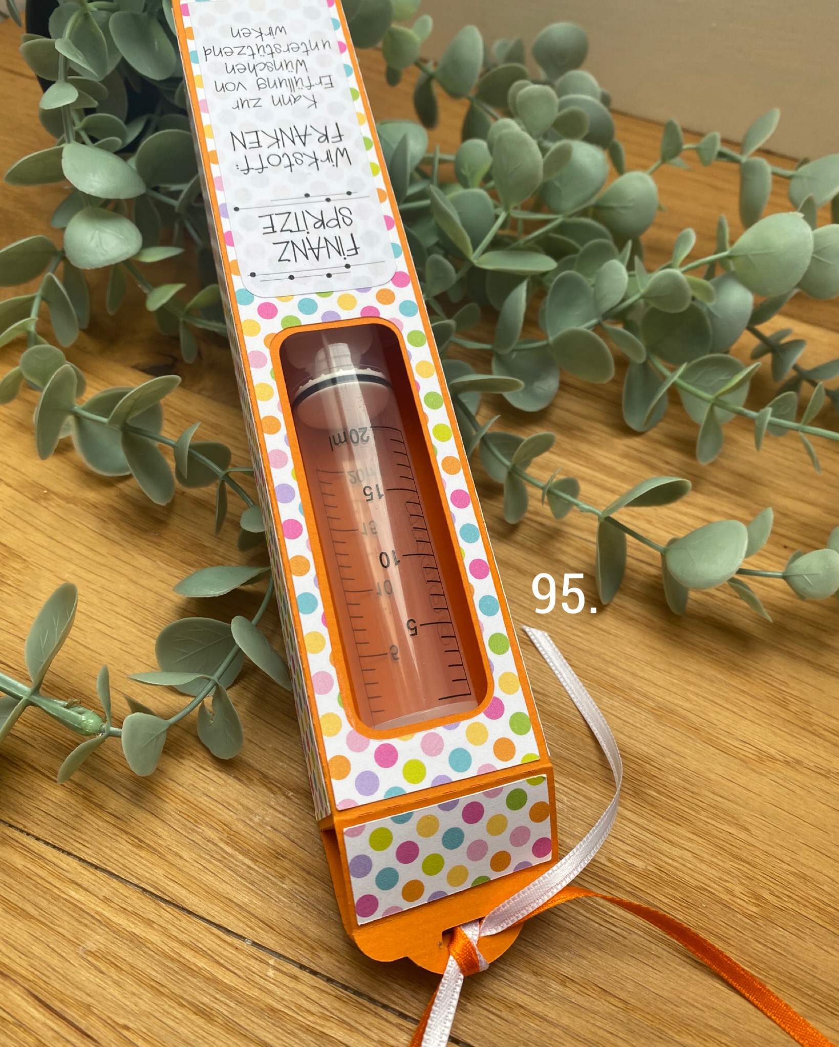 Und wenn es dazu noch originell verpackt ist, wird die Überraschung perfekt! Unsere einzigartigen, farbenfrohen Finanzspritzen bieten die kreative Alternative zum klassischen Geldumschlag. Einfach den Geldschein in die Spritze einrollen und ein Geschenk überreichen, das garantiert in Erinnerung bleibt. Jede Finanzspritze ist ein Unikat und mit unserer großen Auswahl an Farben finden Sie genau das passende Modell. So wird Geldschenken ein echtes Highlight!