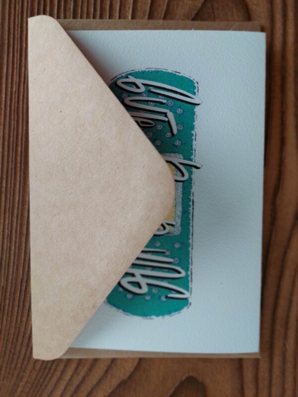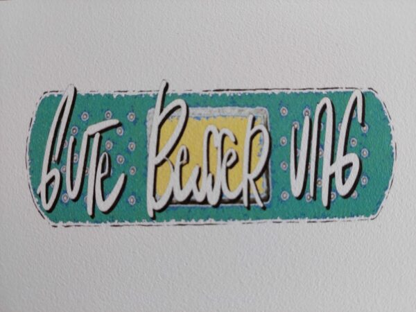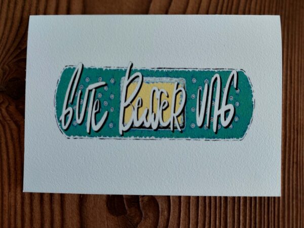Gedruckt auf Aquarellpapier 300g. Die Innenseite ist glatt und kann gut beschrieben werden. Die Karte hat geschlossen das Format DIN A6 (14.8 cm x 10.5 cm). Der Umschlag ist aus Kraftpapier.