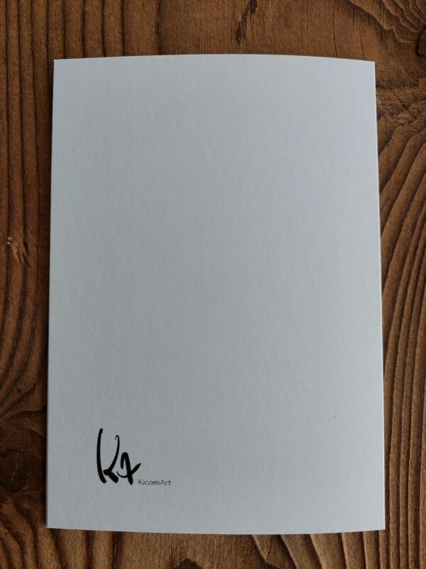 Gedruckt in einer schweizer Druckerei auf 300 g Recycling-Papier ungestrichen. Die Klappkarte hat geschlossen das Format DIN A6 (14.8 cm x 10.5 cm). Der Umschlag ist aus Kraftpapier.