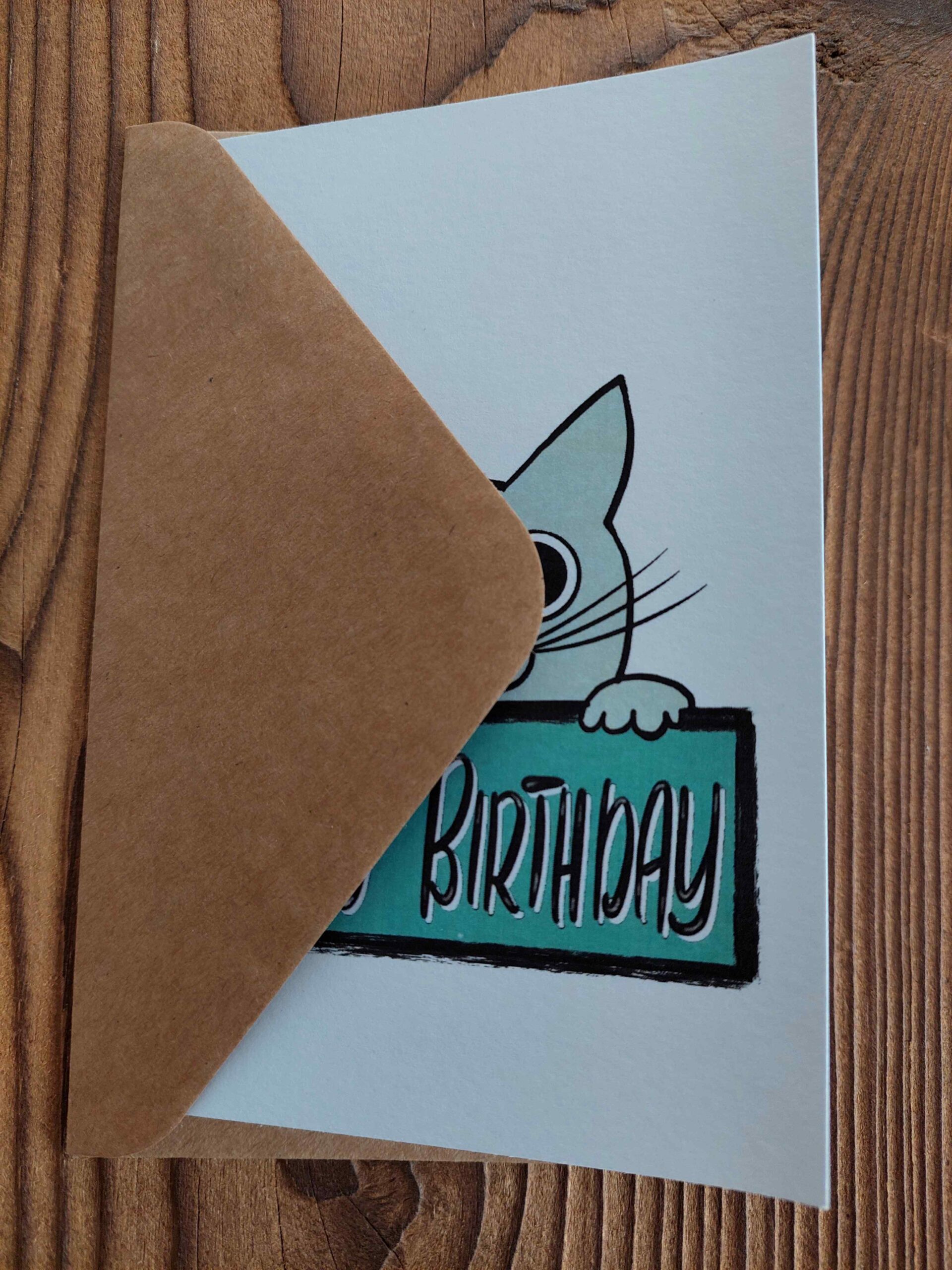 Mit dieser niedlichen Katze schenkst Du dem Geburtstagskind einen fröhlichen Gruss zu seinem grossen Tag.