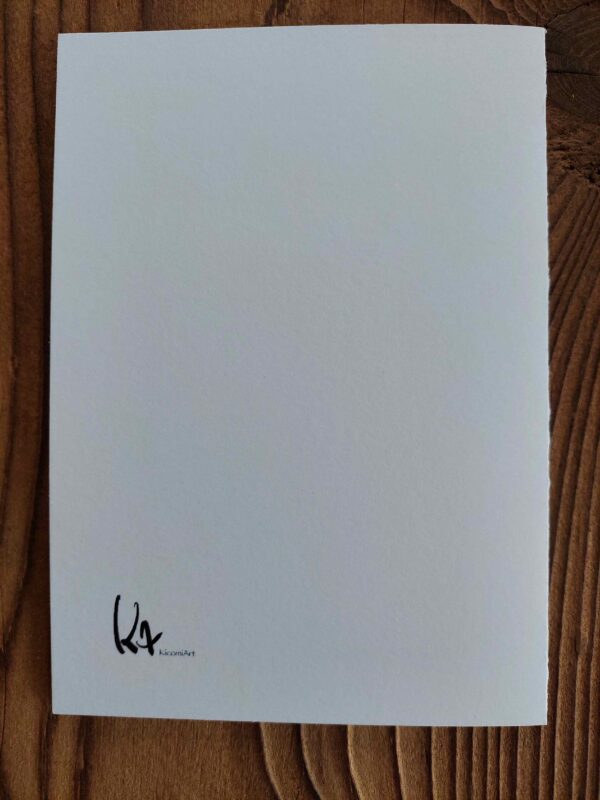 Gedruckt auf Fotokarton 300g. Die Innenseite kann gut beschrieben werden. Die Klappkarte hat geschlossen das Format DIN A6 (14.8 cm x 10.5 cm). Der Umschlag ist aus Kraftpapier.