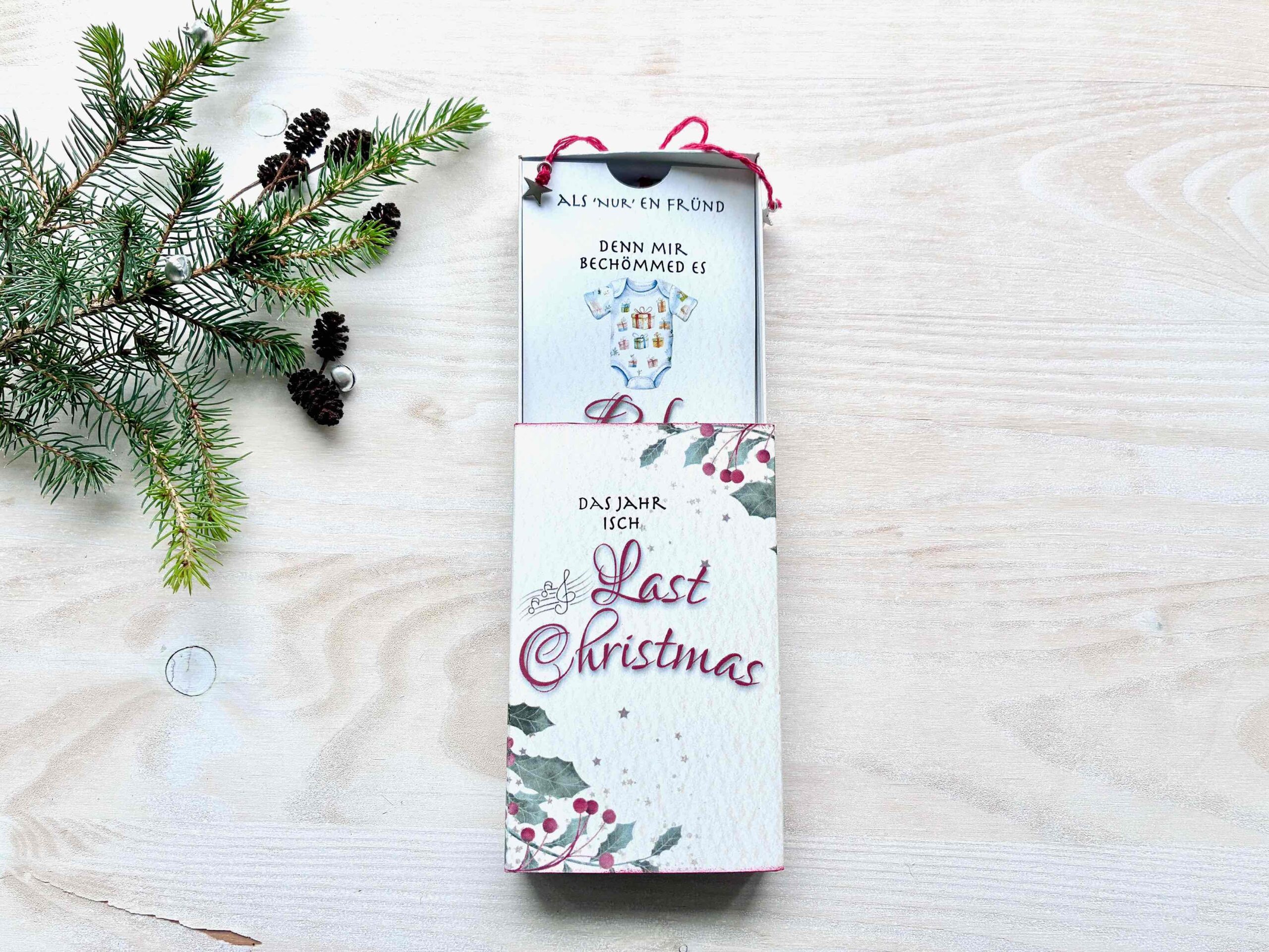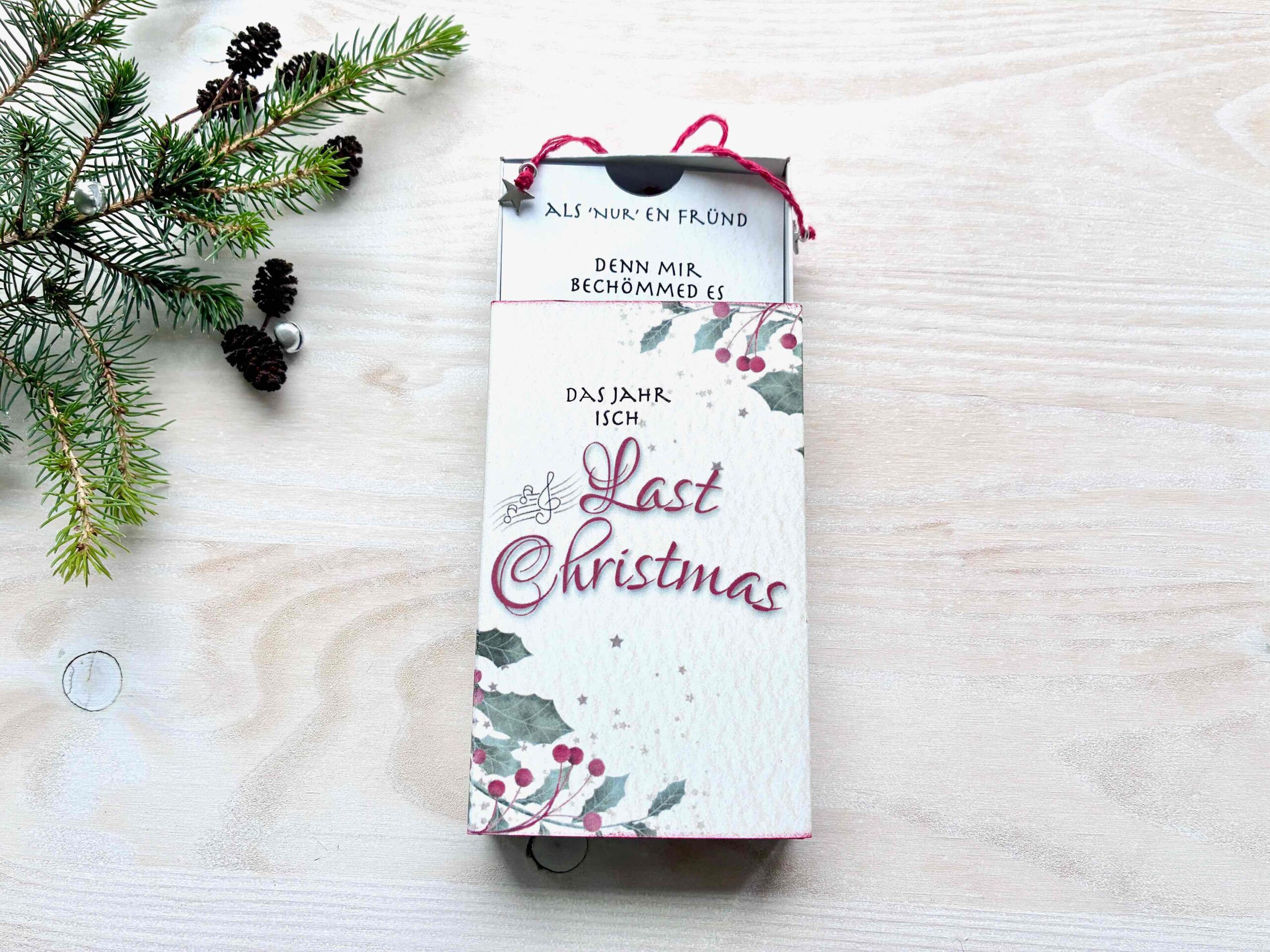 GÖTTI FRAGE GESCHENK WEIHNACHTEN | „DIESES JAHR IST LAST CHRISTMAS“ | ÜBERRASCHUNGS-SET MIT FLASCHENÖFFNER
