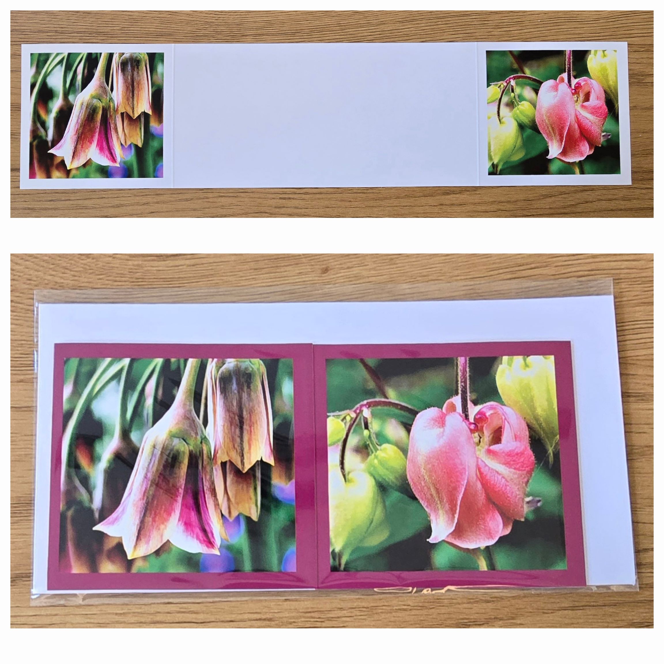 Grusskarte gefaltet Honiglauch-Akelei