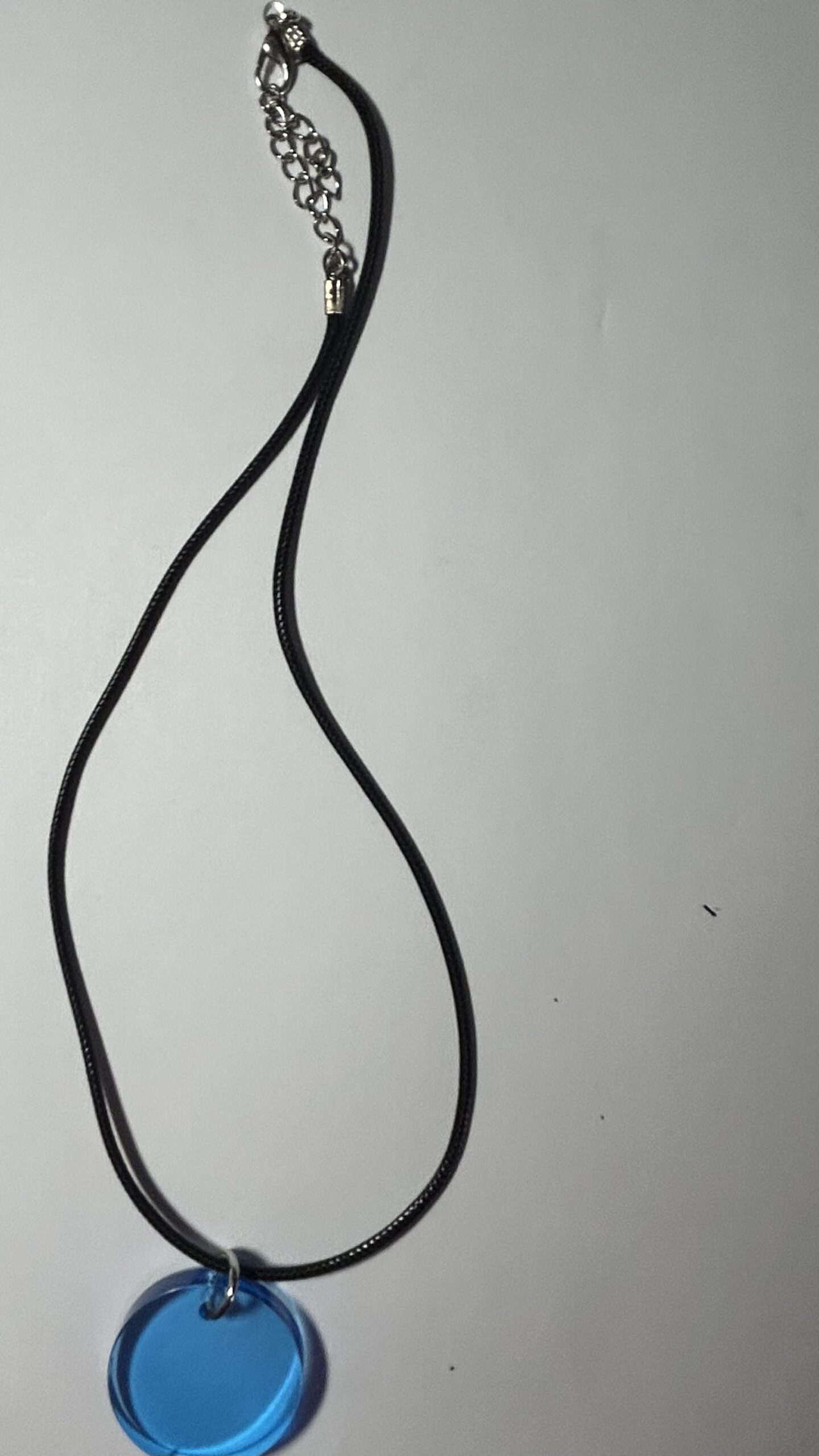 Ich habe den Anhänger selber gegossen. Und ist in blauer Farbe. Dazu mit der Lederband. Die ist 45cm lang.