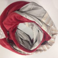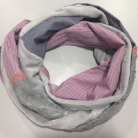 Winterlicher, leichter Loop-Schal aus 4 verschieden Textil-Streifen. Innere Seite aus weicher, warmen, feinen Jersey-Baumwolle. Länge 145 x 28 cm. Ein Hingucker.Waschbar bei 30 Grad , Handwäsche. Jedes Stück ist ein Unikat. Die farblich passende Blumenbroche kann zusätzlich gekauft werden, muss aber separat bestellt werden. Sie können sie im Kapitel „Accessoires“ unter „Anstecker“ dazu bestellen.