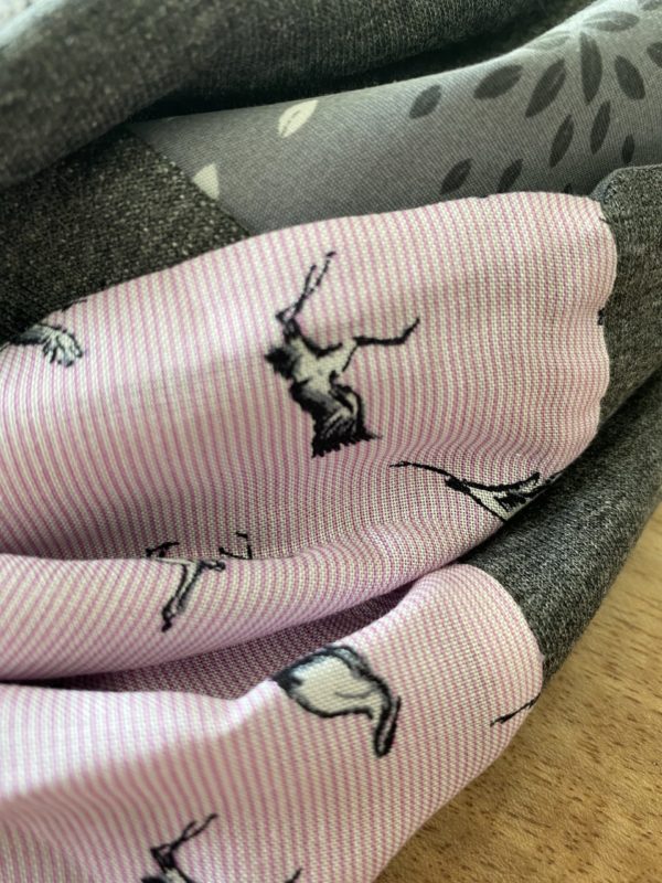 Origineller, weicher Loop-Schal (Rundschal) von Unikat-Design-Kreativteam. Einzigartig durch die verschiedenen Stoffstreifen, Keinen gibt’s zweimal. Jedes Stück ist ein von uns handgemachtes Unikat. Dieser Schal ist ein schönes Accessoires, auch in den warmen Jahreszeiten. Luftig und leicht, geeignet für Diejenigen, die keine extra-warmen Schals mögen. Auch ein originelles, aussergewöhnliches Geschenk für Ihre Liebsten. Handwäsche oder bei 30 Grad waschen. Länge 135 cm.