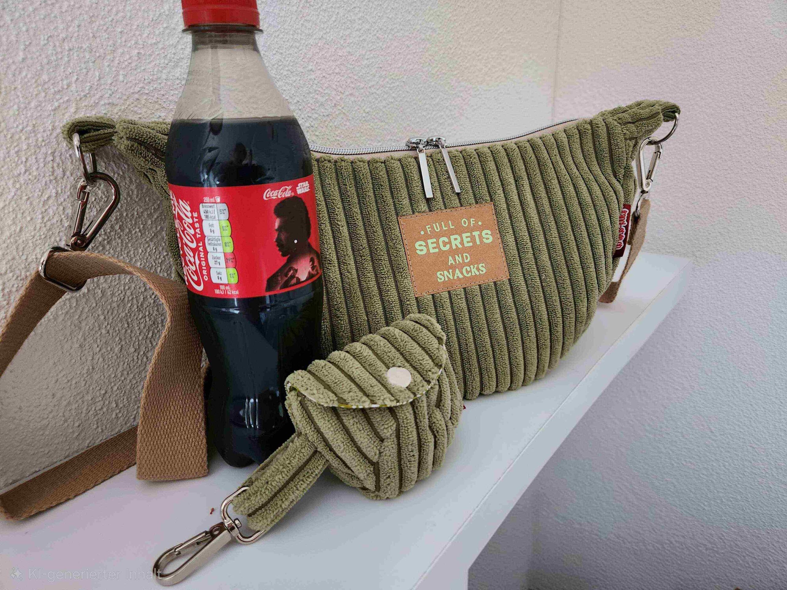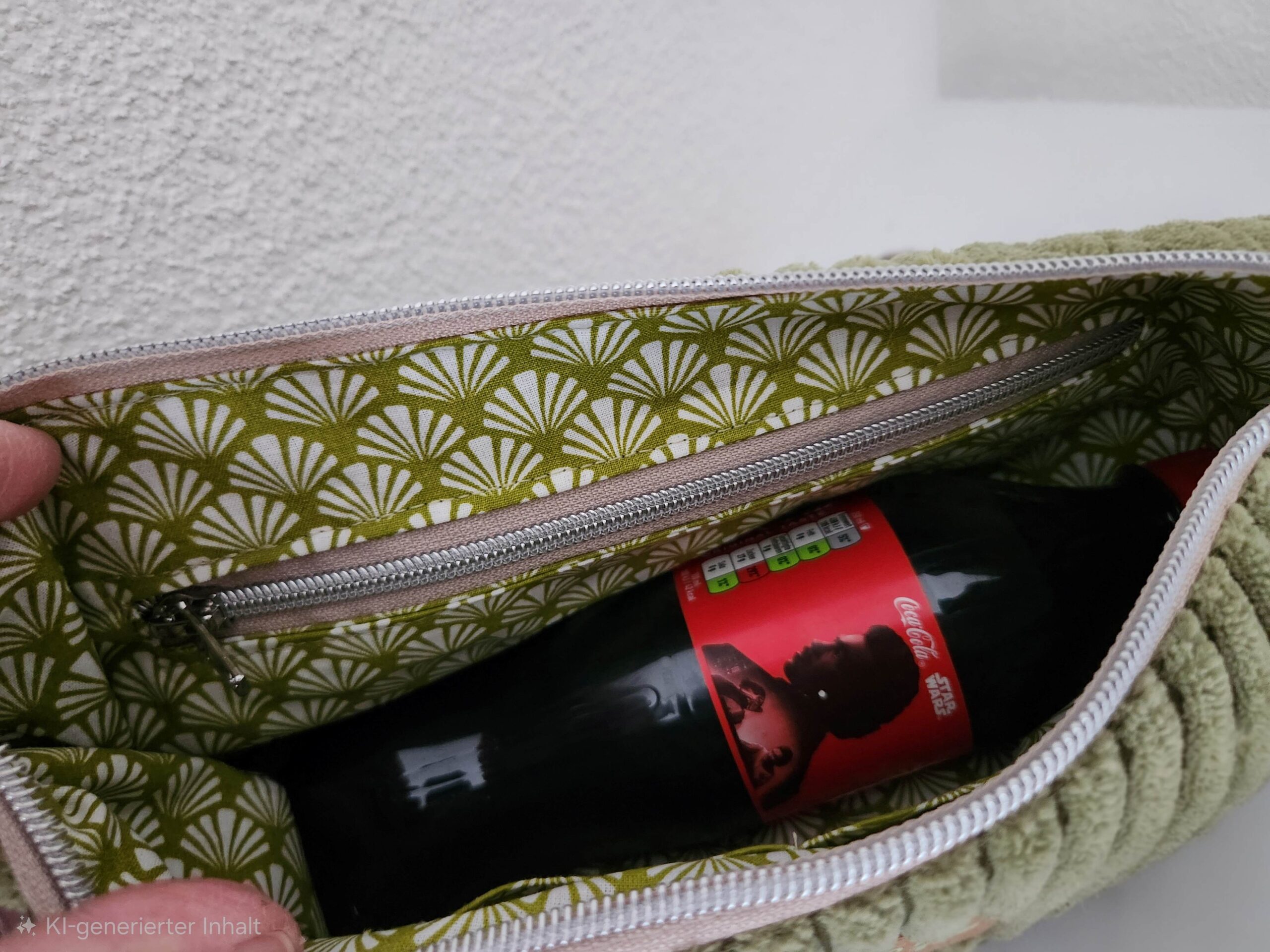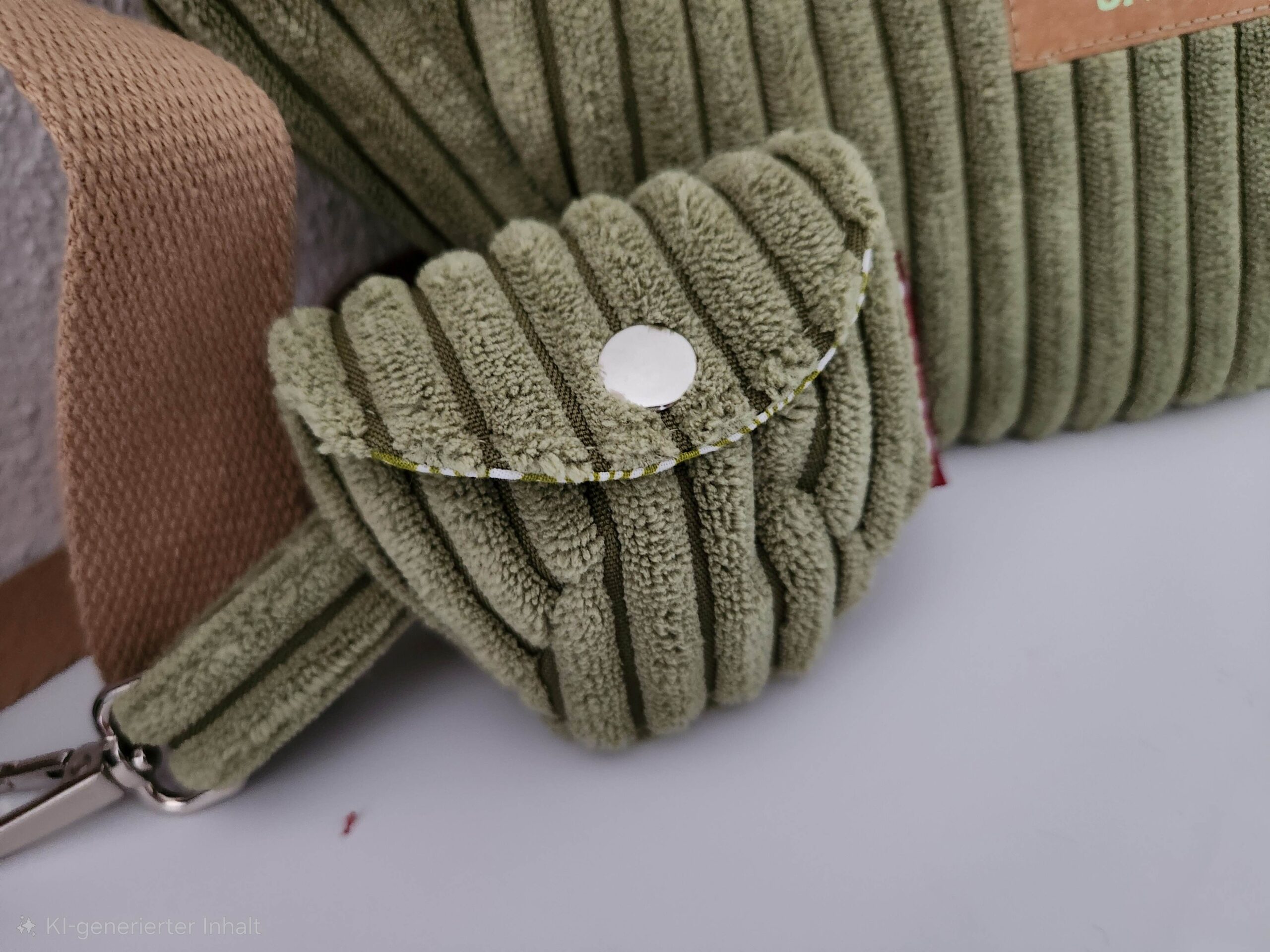 Der Aussenstoff ist aus lindgrünem Breitcord und innen ist Baumwollstoff.