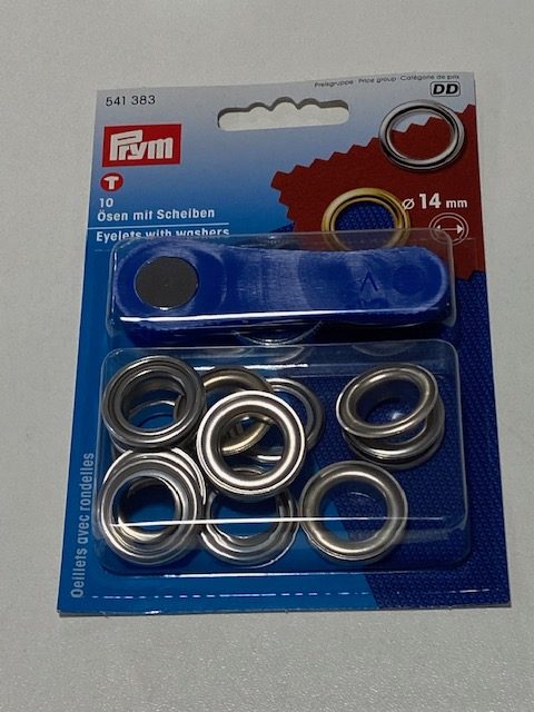 10 Stück Prym rostfreie Oesen mit Scheiben, 14mm, aus Messing, Farbe silber, inkl. Werkzeug
