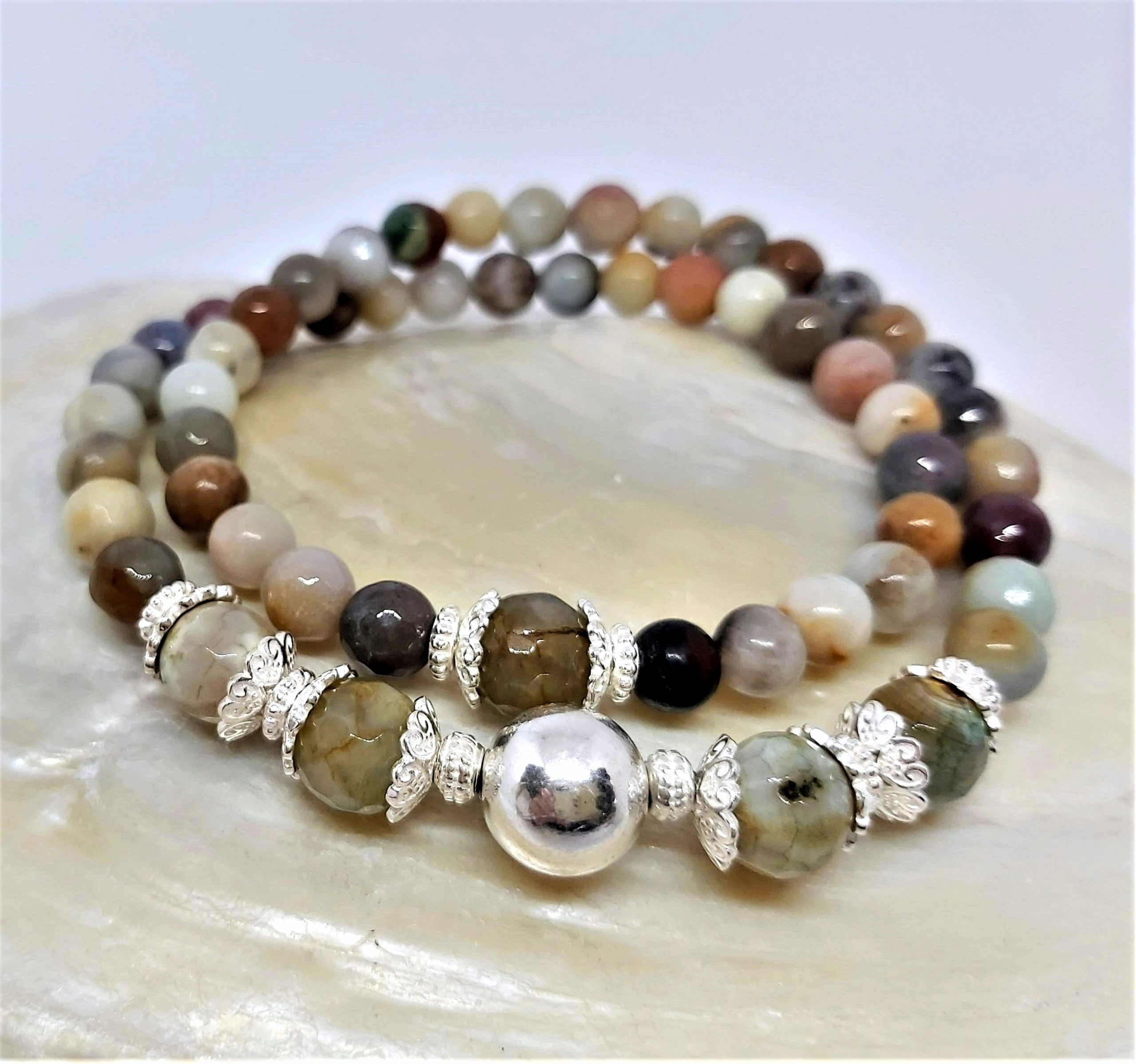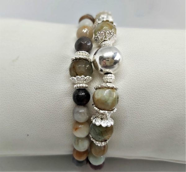 PERLENARMBAND KIRA- 2-er - Silber beige-grau-braun