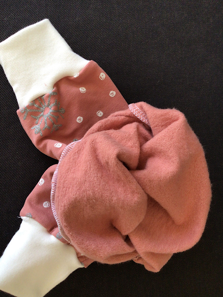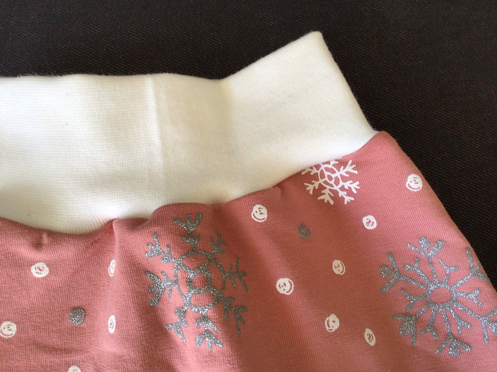 Kuschelig weiche, warme Pumphose aus Sweatstoff mit Glitzerflocken. Kann lange getragen werden.