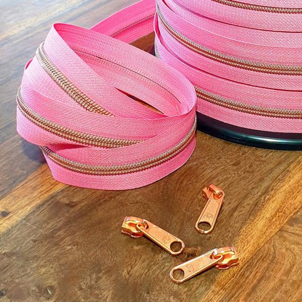 Metallisierter Endlos-Reissverschluss inkl. 3 farblich passender Zipper (lose Bügelschieber)