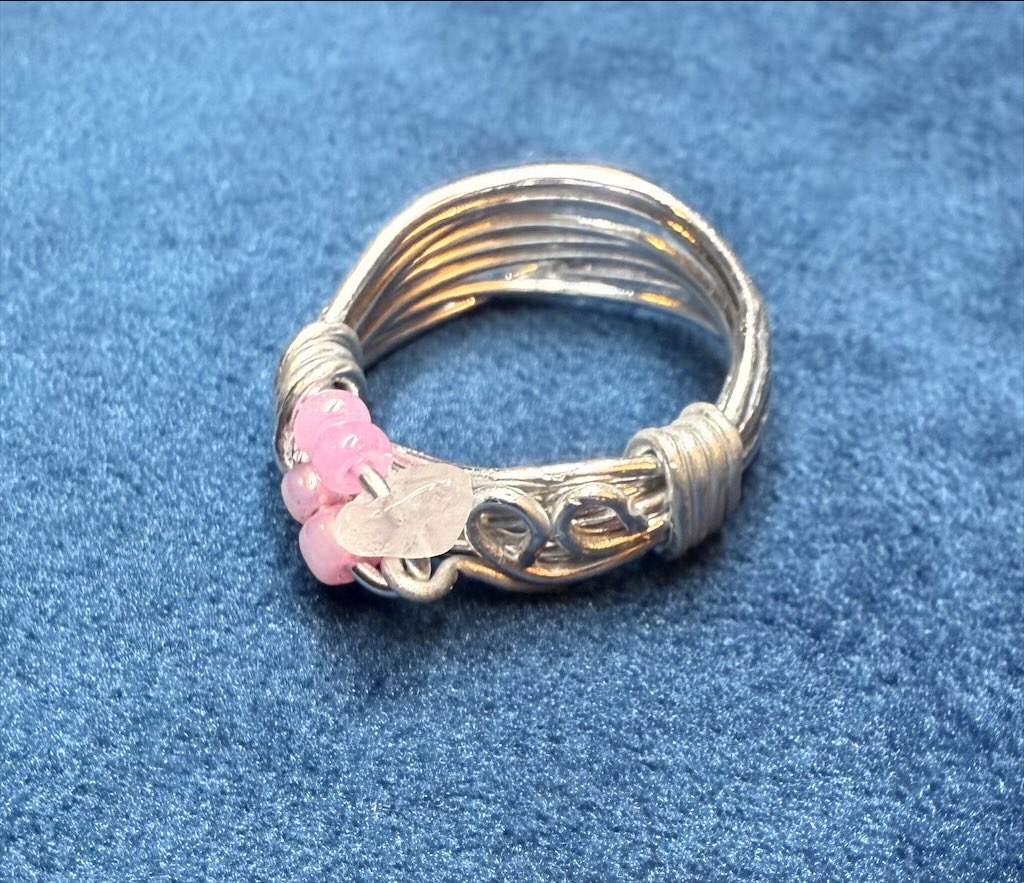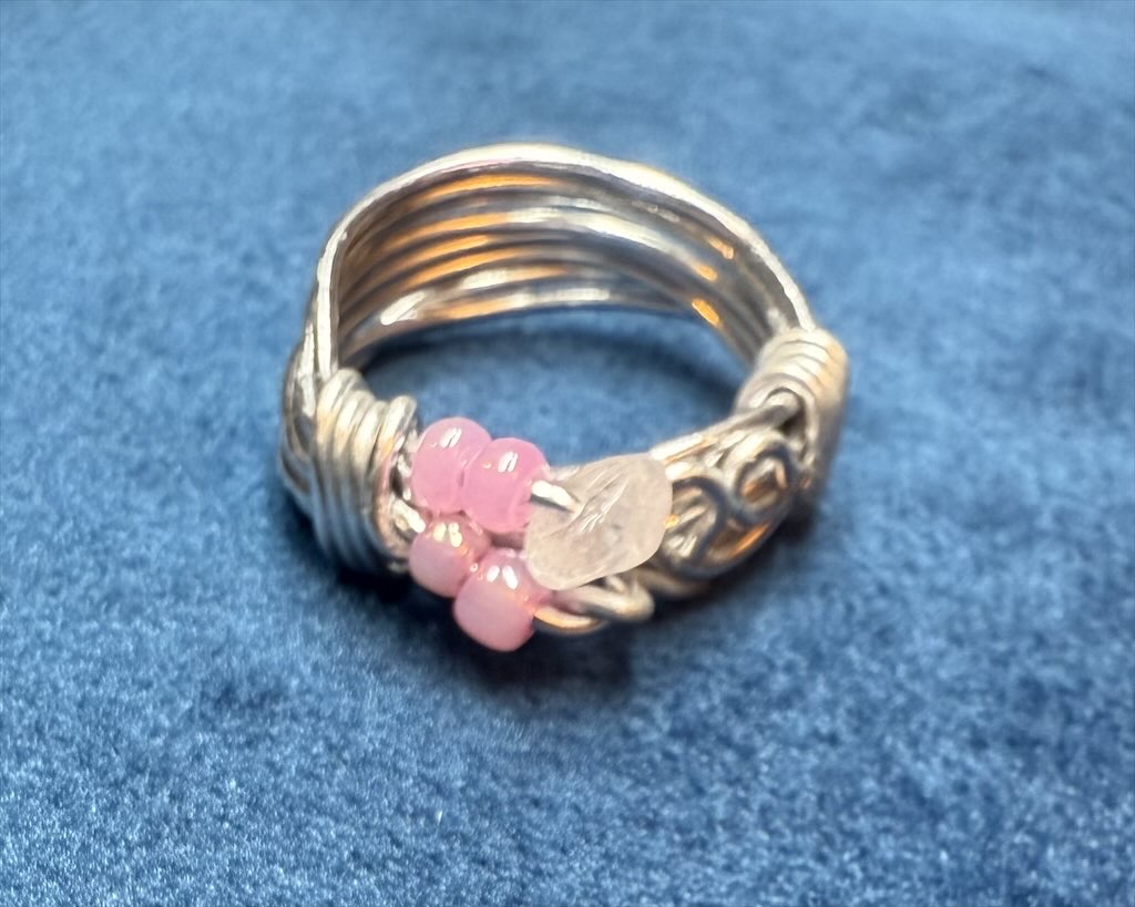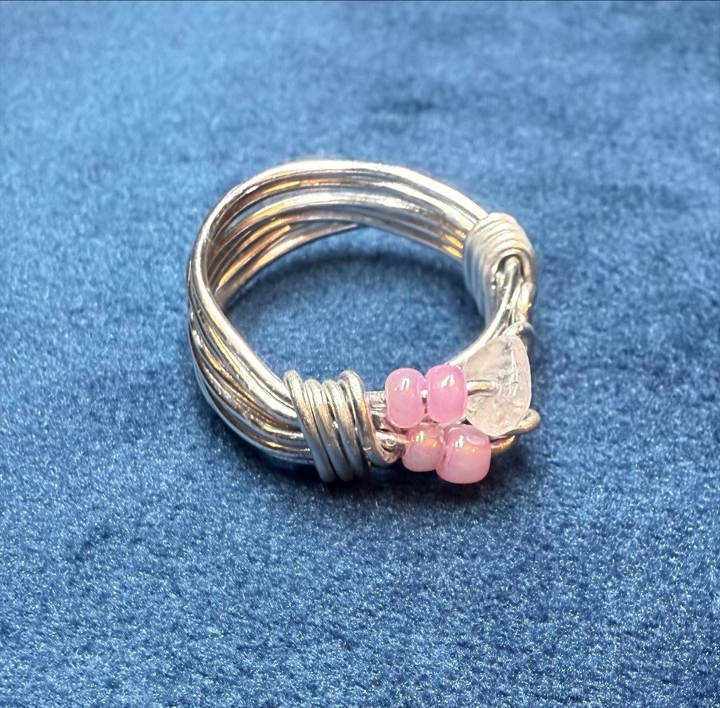 Ring in rosa mit Rosenquarz ,Stein der Liebe in der Grösse 8