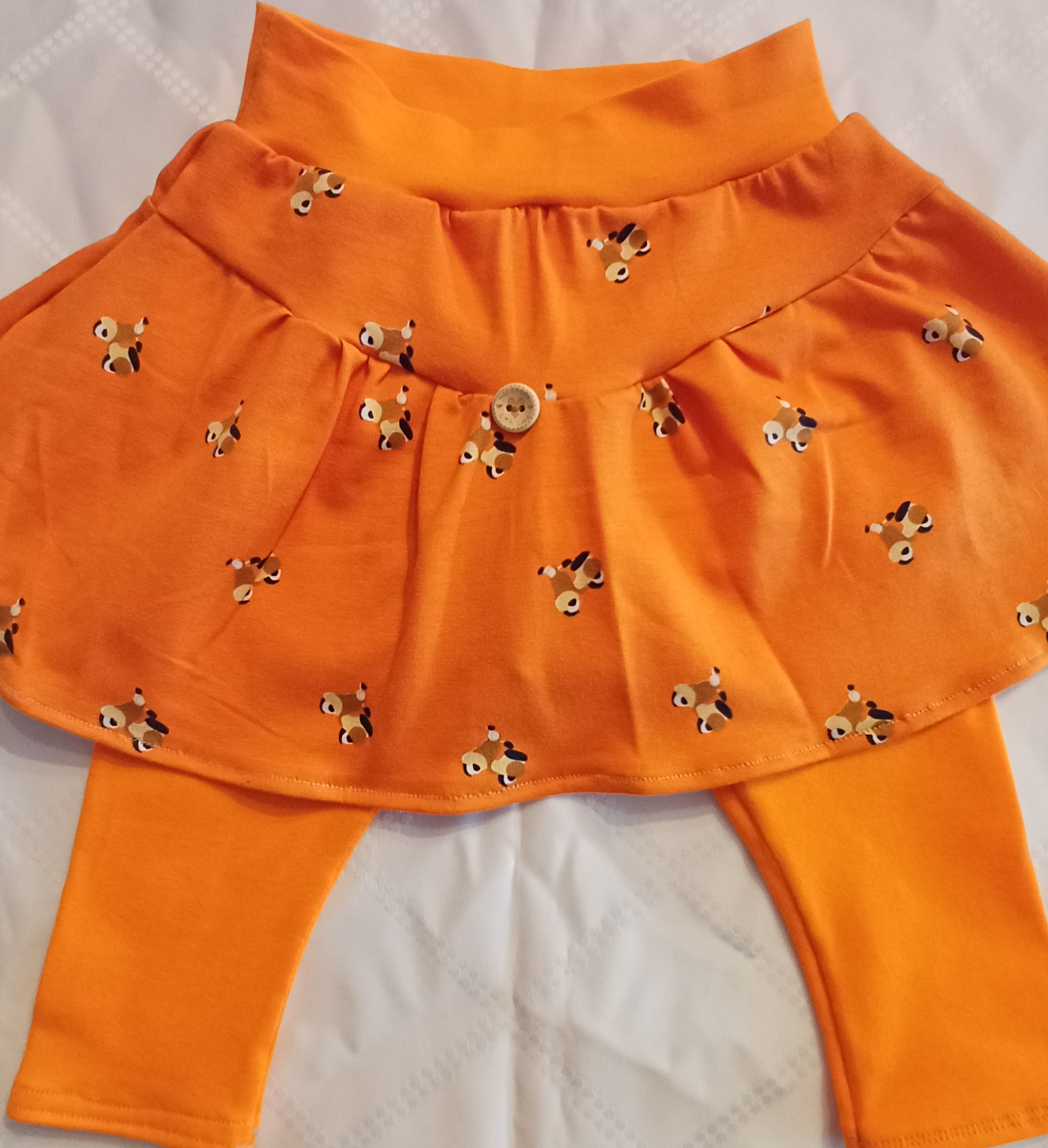Dies Röckli Leggins Kombi wächst noch eine lange Zeit mit. Da alles aus Baumwolljearsey genäht wurde sind alle teile dehnbar, und garantieren genügend Bewegungsfreiheit.