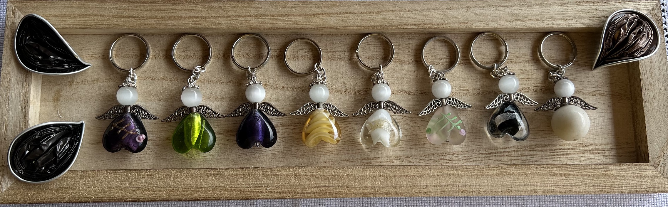 Handgefertigte Schutzengel achten auf ihre Schlüssel. Das Glasherz welches den Laib verkörpert ist handgefertigt und daher immer etwas verschieden. Es werden nur qualitativ hochwertige Produkte verwendet sollte dennoch ein Schaden entstehen kann es zur Reparatur an mich gesendet werden.