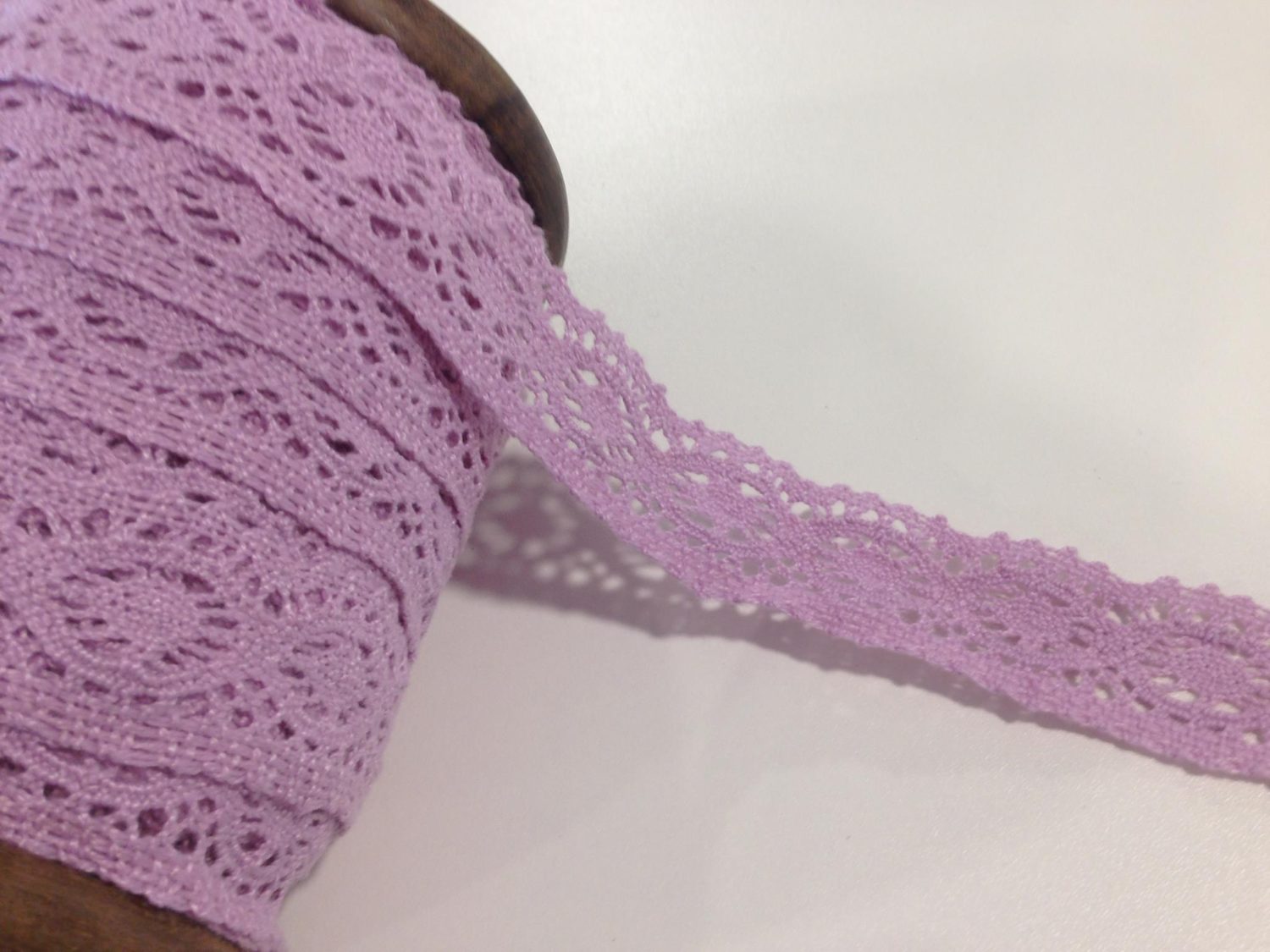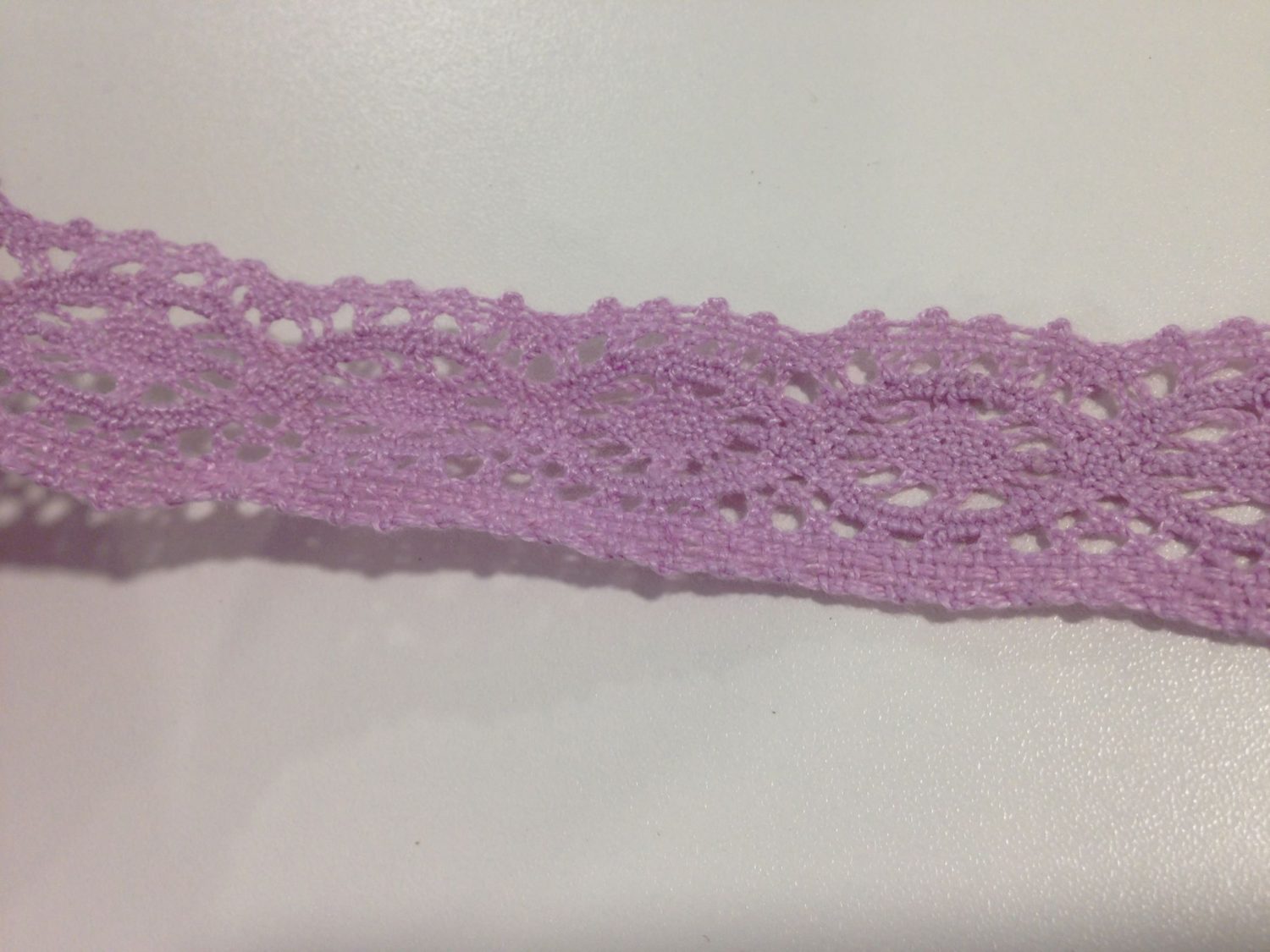 St. Gallener Spitzenband in Farbe Flieder (Hell Lila). Breite 3 cm. Material: Baumwolle.