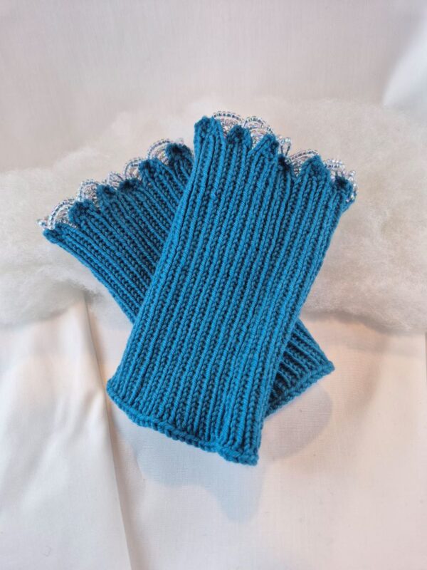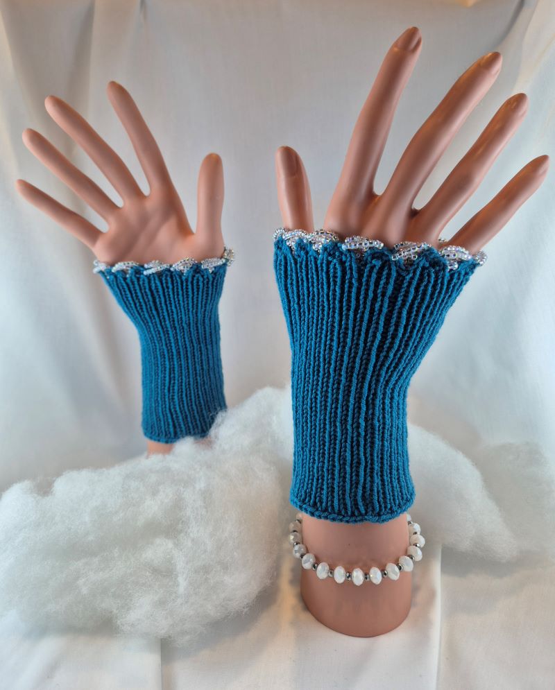 Die Stulpen sind bei der Fingeröffnung mit Glasperlen besetzt.