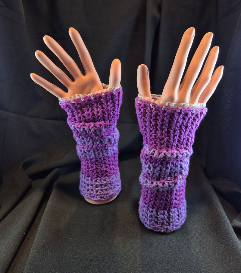 Diese handgestrickten Stulpen sind aus 100% Baumwolle gehäkelt.