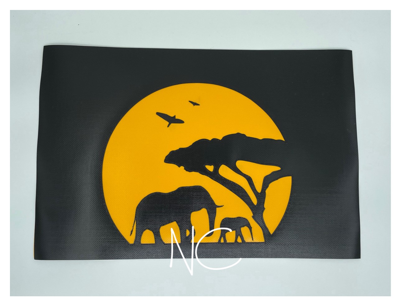 Tischset aus Blache schwarz/ gelb „Elefant“, 45x30cm