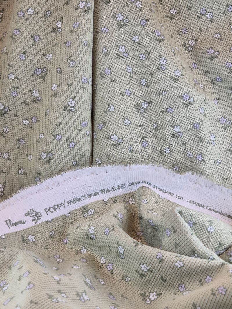Waffeljersey grün mit Blumen