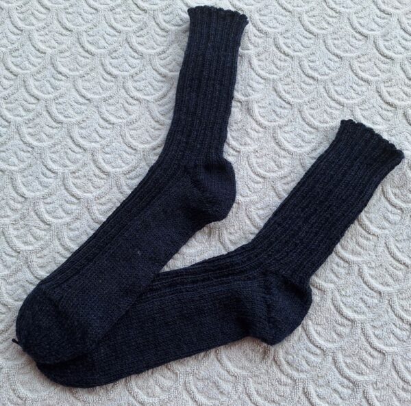 Ferse und Fussspitze verstärkt / Strickmuster elastisch / Material: Sockenwolle 75% Schurwolle, 25% Polyamid / Farbe: marine / Preis inkl. Versandkosten / Verkäufer: Shop holidayfarm / auf Anfrage weitere Modelle verfügbar / stricke auch im Auftrag mit Ihrer selbst ausgewählten Wolle