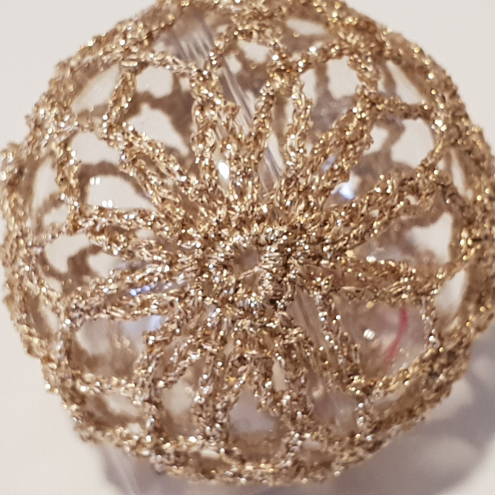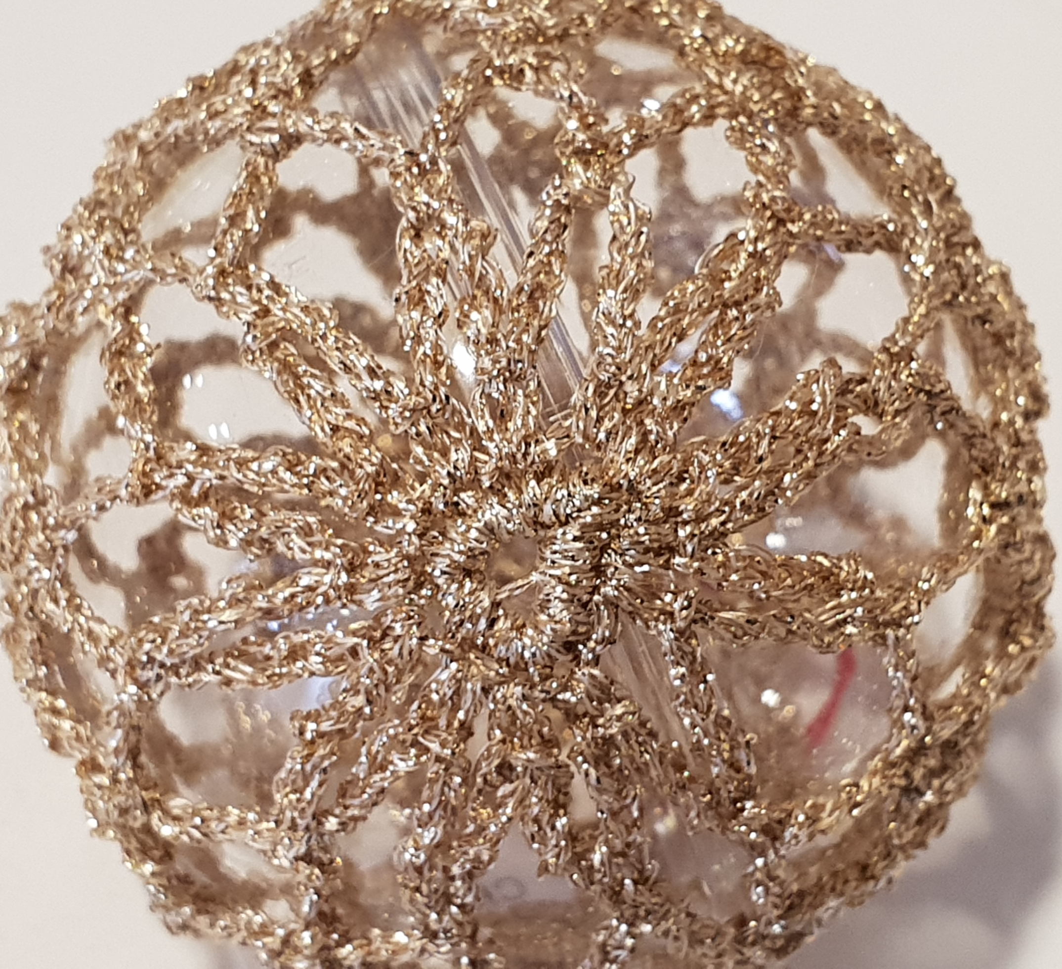 Die Plexiglaskugel wurde mit Baumwollgarn umhäkelt