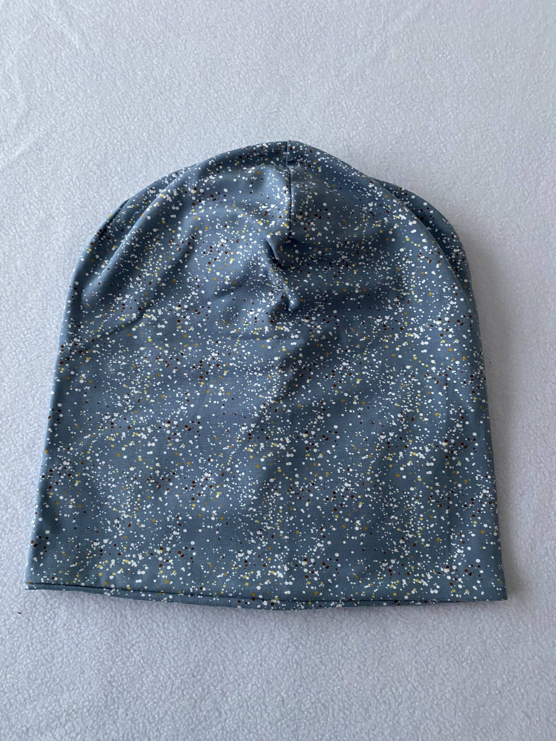 Für die kalte Jahreszeit ist diese Mütze bestens geeignet. Zweilagig genäht aus Baumwoll-Jersey oder Strickstoff. Kopfumfang 56 cm. Einmalig und als Geschenk eine passende Idee.