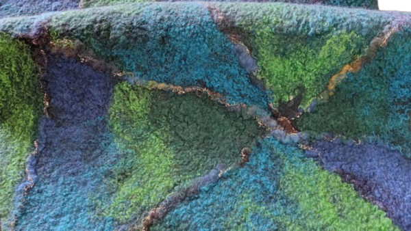 Wunderschöner Wollschal, blau grün, Filztuch, Unikat, Neu