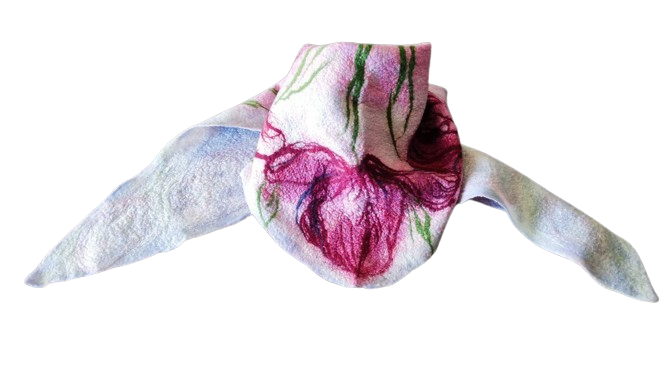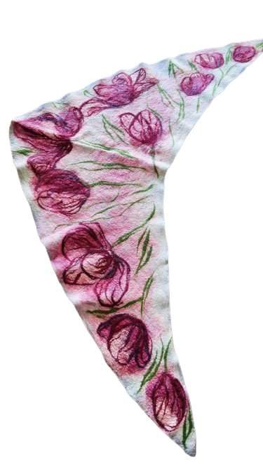 Wunderschönes Wollntuch, handgefilzt, Tulpenmotiv